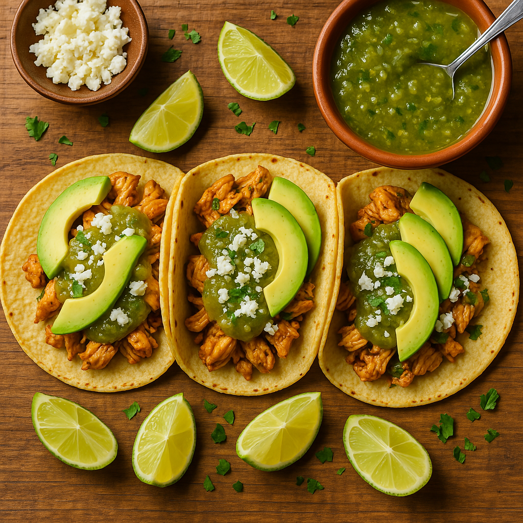 One of the most simple and beloved Mexican recipes, because it’s quick, flavorful, and always a crowd-pleaser—Chicken Tacos with Salsa Verde (Tacos de Pollo con Salsa Verde)! 🌮